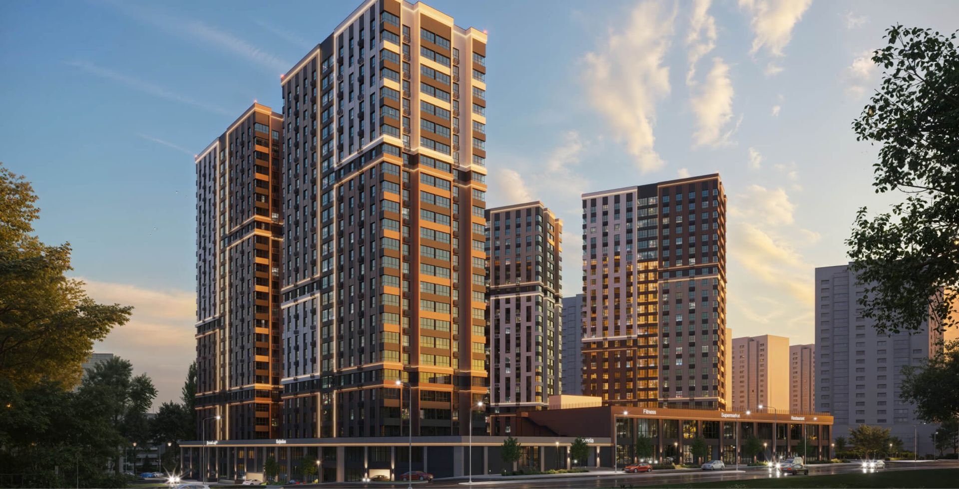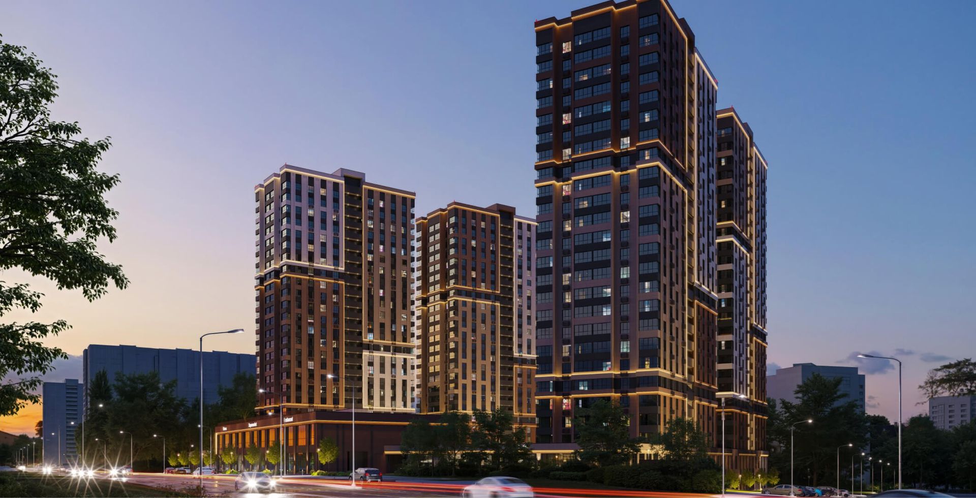 Светодизайн ЖК «Звезда Столицы 2» формирует облик ночного города, выполняя роль доминанты среди окружения и новой путеводной звезды для горожан, благодаря архитектурной подсветке подобной северному сиянию.