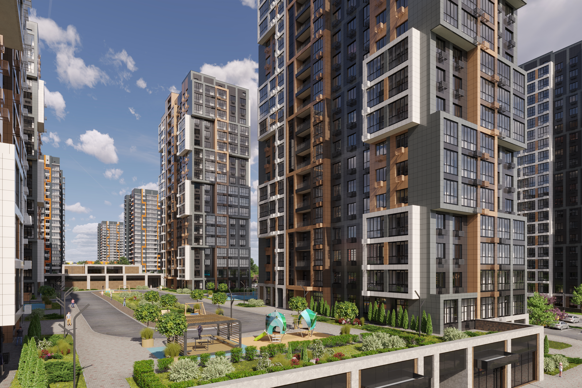 Сегодня ключевым пунктом при строительстве жилых комплексов является благоустроенная территория вокруг дома, включающая детские и спортивные площадки с безопасным покрытием, живое озеленение, а также зоны для прогулок и отдыха. Во многих новостройках сегодня устанавливаются бесшумные лифты, функциональные входные группы, подъезды на уровне тротуара и, конечно, парковочные места для машин. Вы можете ознакомиться с проектом и быть уверенным, что рядом с вашим домом будет все необходимое. Если срок сдачи жилого комплекса запланирован в текущем году, вы можете лично убедиться в его соответствии плану строительства, а вместе с тем и в надежности застройщика.
