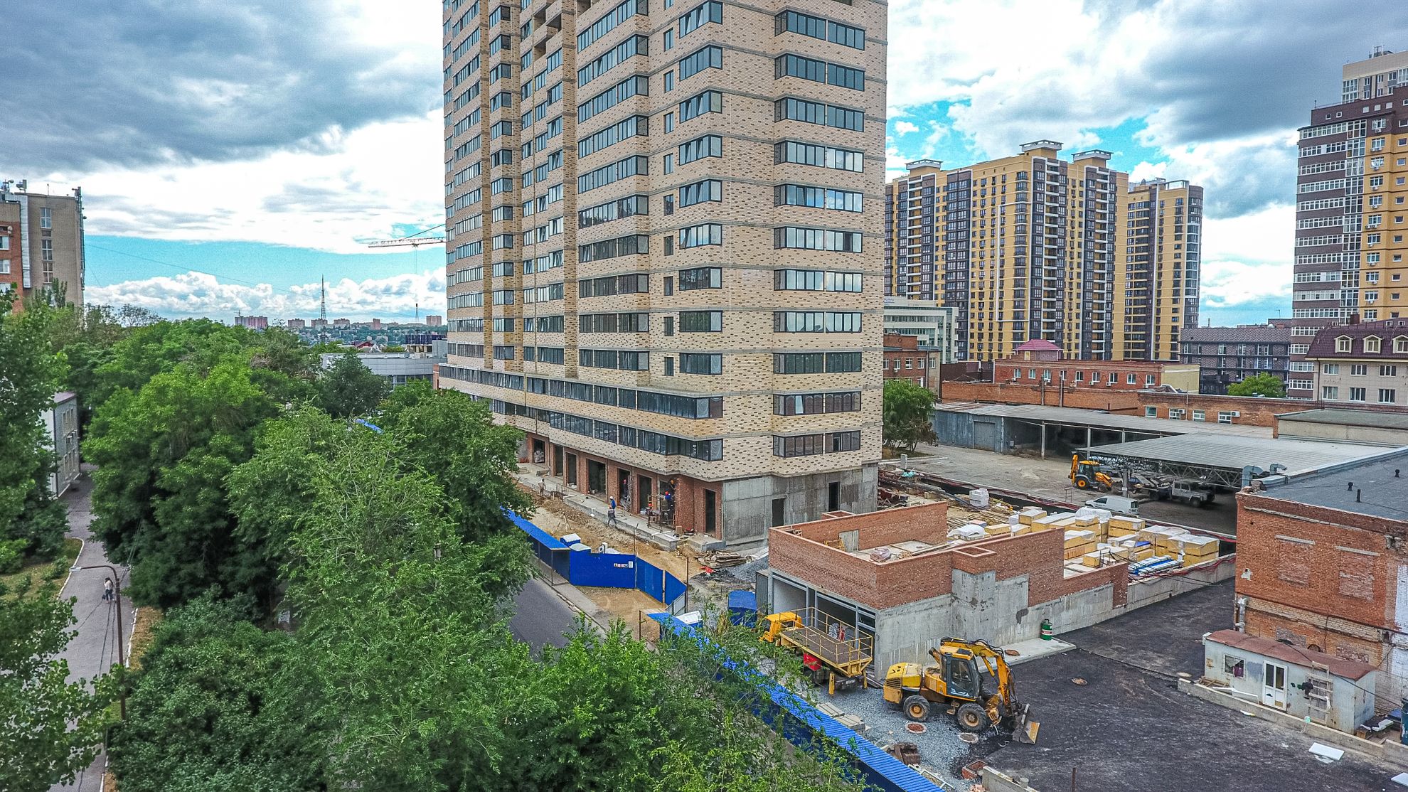 - Каменная кладка БС-2: цоколь - 100%, 1 этаж – 65%, 2-16 этаж – 100%, 17-20 этаж – 95%, 21 этаж – 70%, 22 этаж – 60%, 22 этаж – 10%;