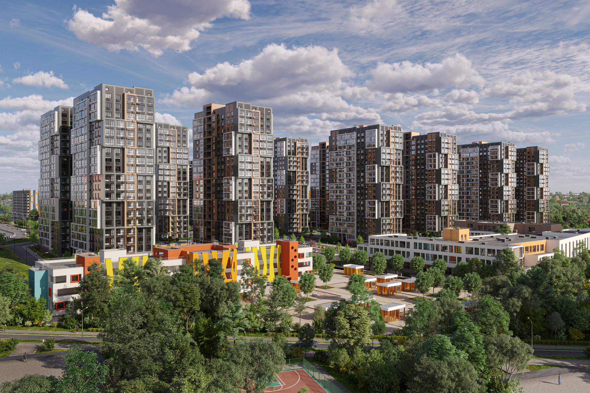Территория жилого комплекса поделена на зоны, функциональные особенности которых помогают поддерживать баланс между работой, отдыхом, образованием, спортом и хобби. На первых этажах в каждом корпусе будут доступны магазины, кафе и маркетплейсы, а торгово-деловой центр разместит в себе офисы и ритейл.