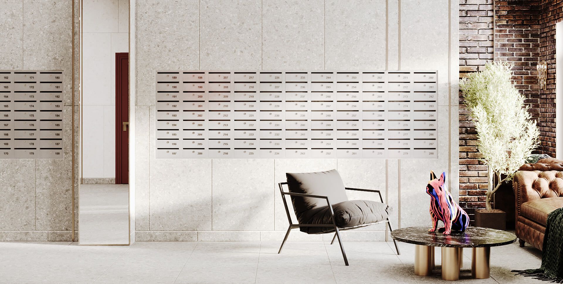 - А можно просто стеклянные двери и почтовые ящики?