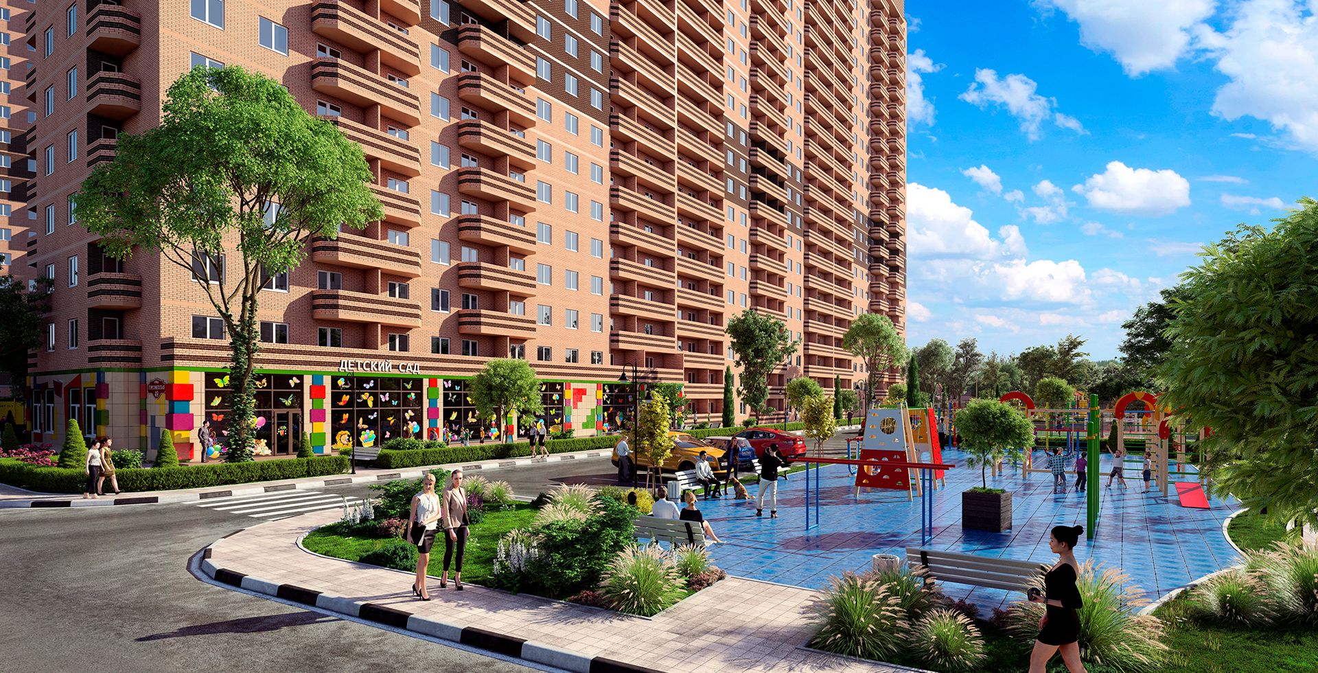Во 2-ом литере на первом этаже размещен собственный современный детский центр, рассчитанный на 100 малышей.